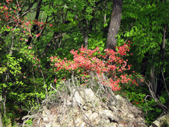 霧降ノ滝付近は山ツツジが見頃であり、色鮮やかである。