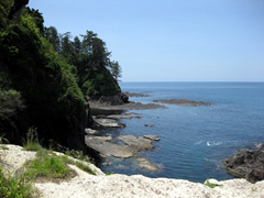 日本海は穏やかである。水平線の先は北朝鮮になる。