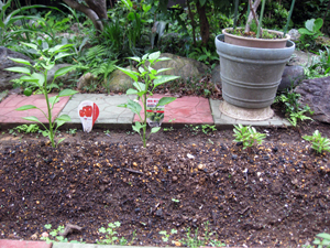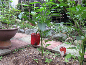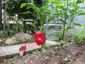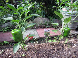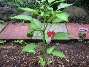 06/19 大きく成長した赤ピーマンとピーマン |