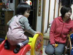 キッズコーナーで遊ぶ百合ちゃん。(1年前にここにきて遊んだことを記憶していた) |