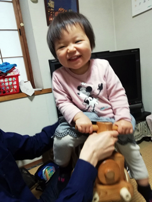 おもちゃ博物館から戻り、満面の笑みで遊ぶ百合ちゃん(´∀`)。