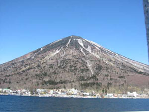 中禅寺湖と男体山・吹雪くこともなく穏やかな天気であった。(ここ数日、前日までは吹雪いていたとのこと)