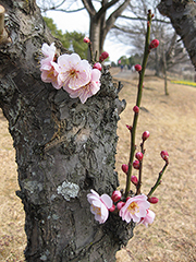 開花時期には無料開放され、約3haの敷地に1200本の白梅(7割)紅梅(3割)が咲き誇る。 |