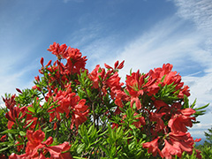 この日、午後から晴れ上がり空の青さとオレンジや赤のレンゲツツジが奇麗であった。風が強かった。 |