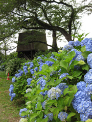 紫陽花の手入れも行き届き土塁の斜面一面に紫陽花を見ることができた。 |